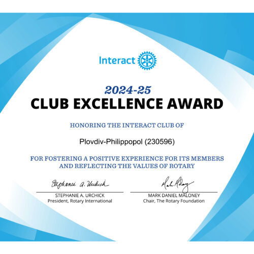 June 30, 2025Интеракт клуб Пловдив – Филипопол е отличен с Interact Club Excellence Award 2024–2025 – най-високата международна награда за Интеракт...
