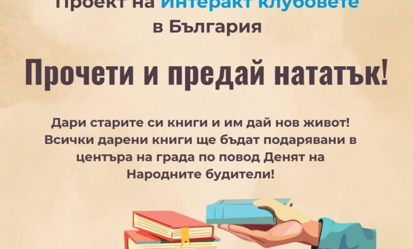 В изминалия празничен уикенд, на 1 и 2 ноември, Пловдив се обедини около една кауза — да прави добро. Интеракт клуб Пловдив-Филипопол реализира дистриктната инициатива „Прочети и предай нататък”, която се осъществи едновременно в различни градове на страната и завърши повече от успешно в града под тепетата. На главната улица в града през тези два